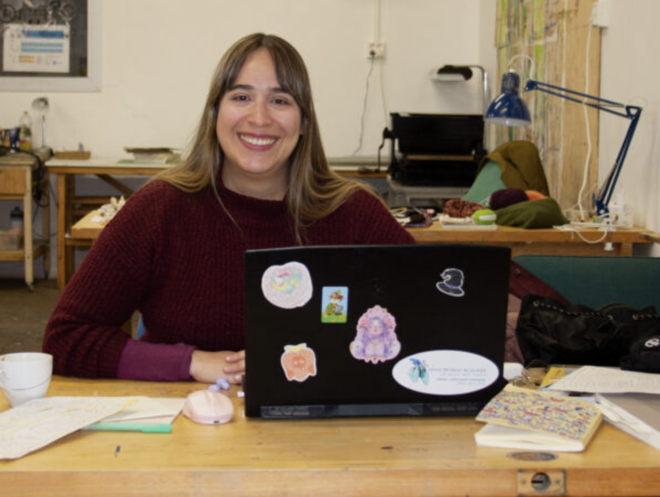 co-curator WAP26, WAP23/25 participant Janice Jensen (*1994) is a visual artist from Germany. She is mostly engaged with drawing and painting but also works with media such as video and painting in virtual reality. Among other things, Janice considers herself a walking artist and combines walking and drawing using her self-designed drawing machine to document landscapes. She has participated in all WAP programs and is co -curator of WAP26