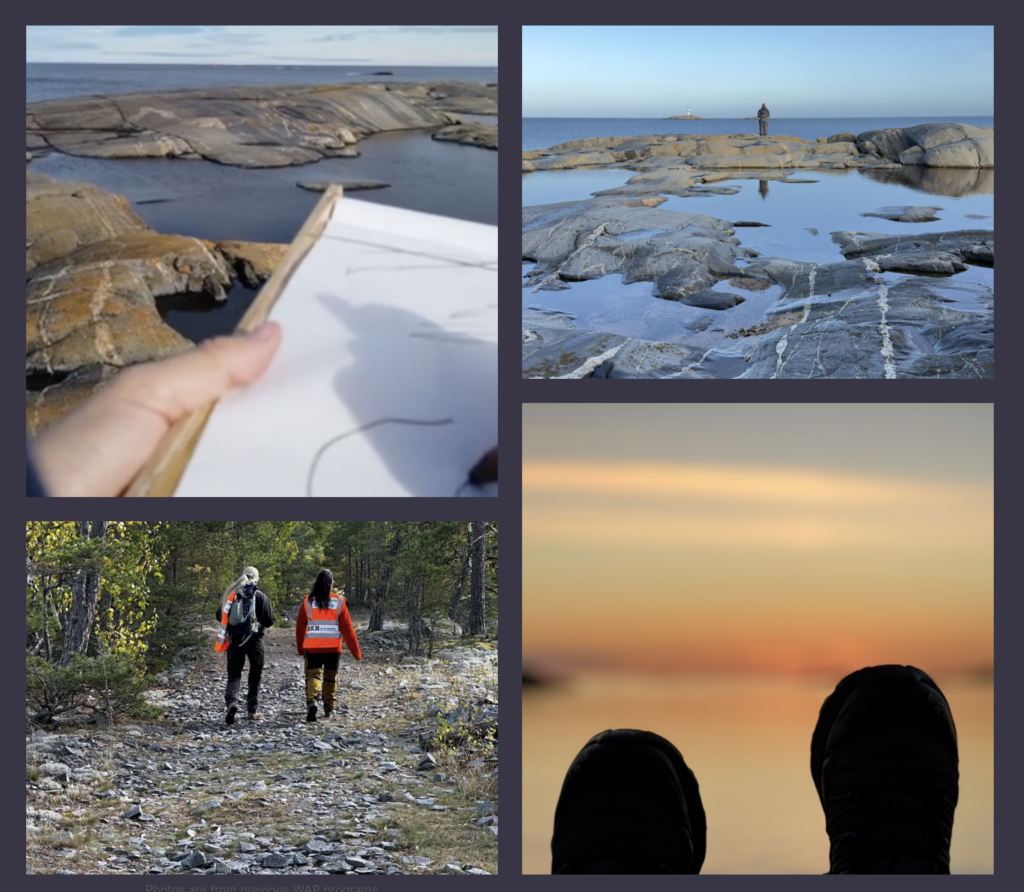 After three years where the artists had their own studio on Björkö in the northern Stockholm archipelago, WAP26 signals a deliberate methodological shift. The project abandons a stable geographic anchoring in favor of a nomadic mode of operation, positioning transience as both an epistemic method and a political condition. Traversing the landscape we will take turn leading walks influenced by one’s practice and the curatorial position of walking approached as a form of situated attention – an embodied way of encountering territory, history, and power under conditions of rupture and uncertainty.
